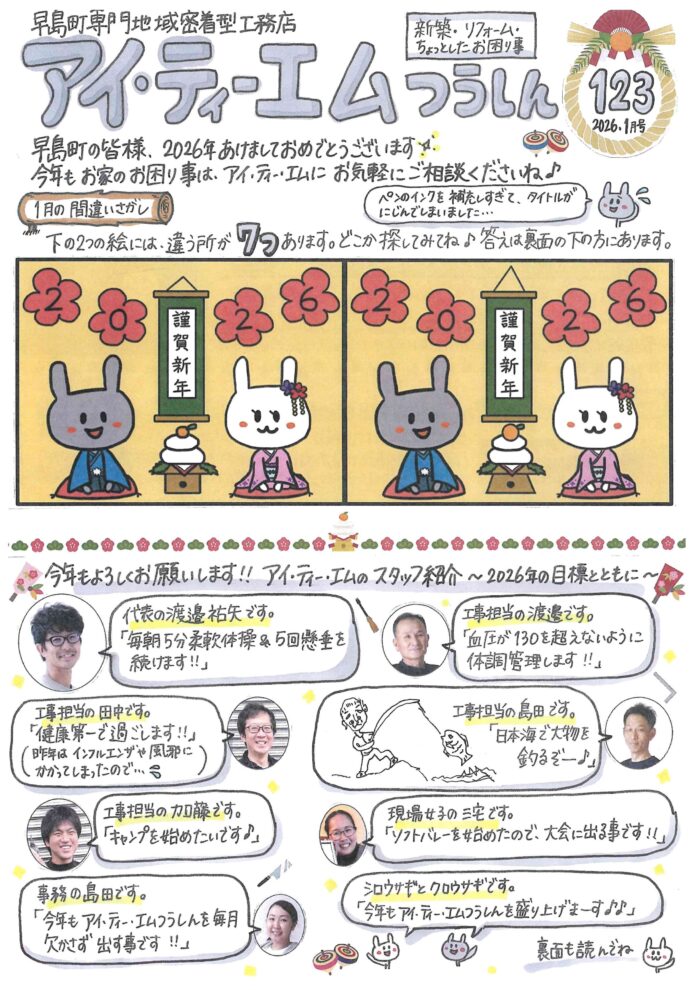 今回は、2026年1月号の有限会社アイ・ティー・エム様のチラシを配布させていただきました。