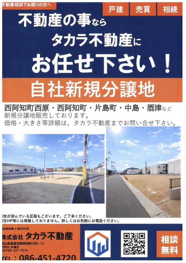 自社新規分譲地 :西阿知町西原・西阿知町・片島町・中島・酒津など